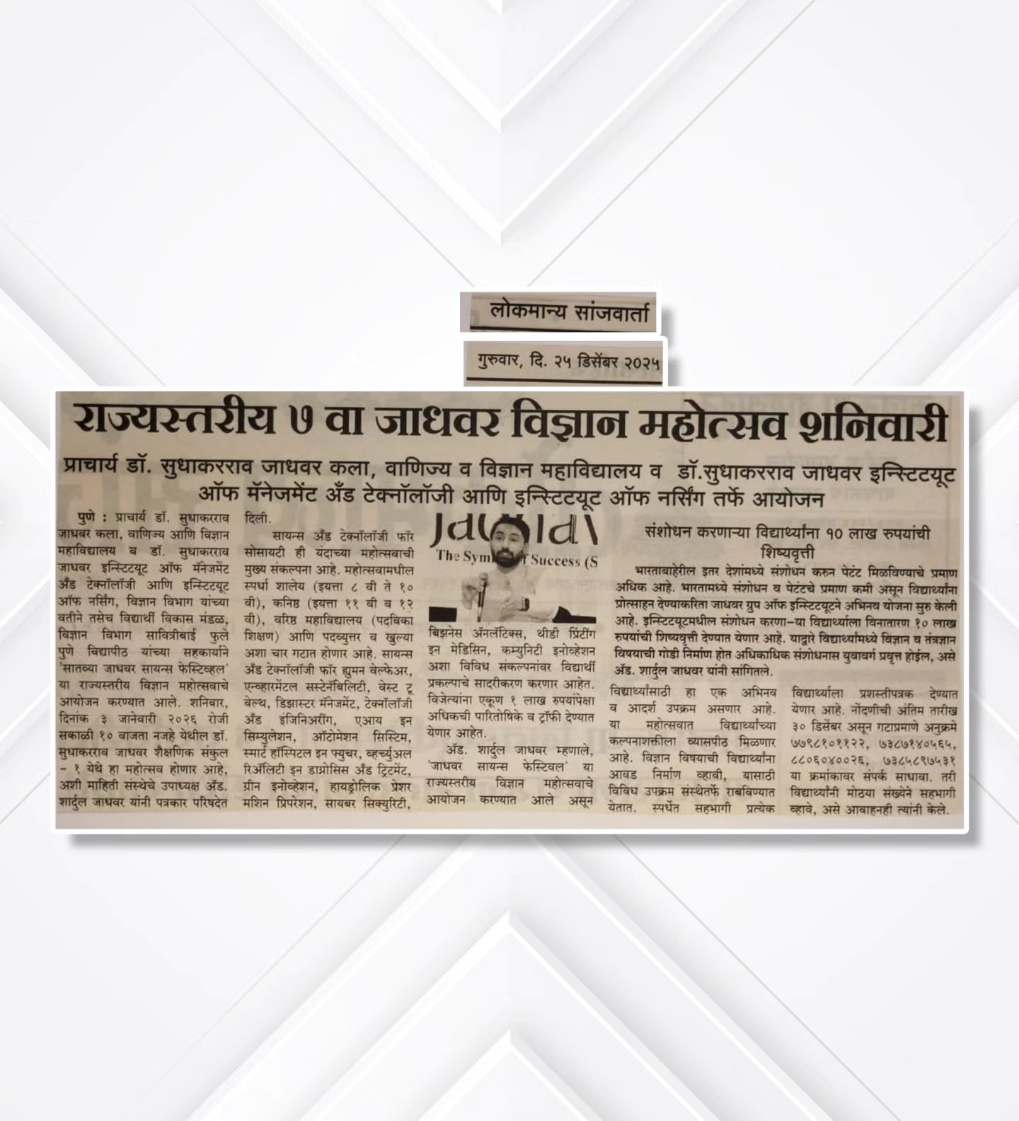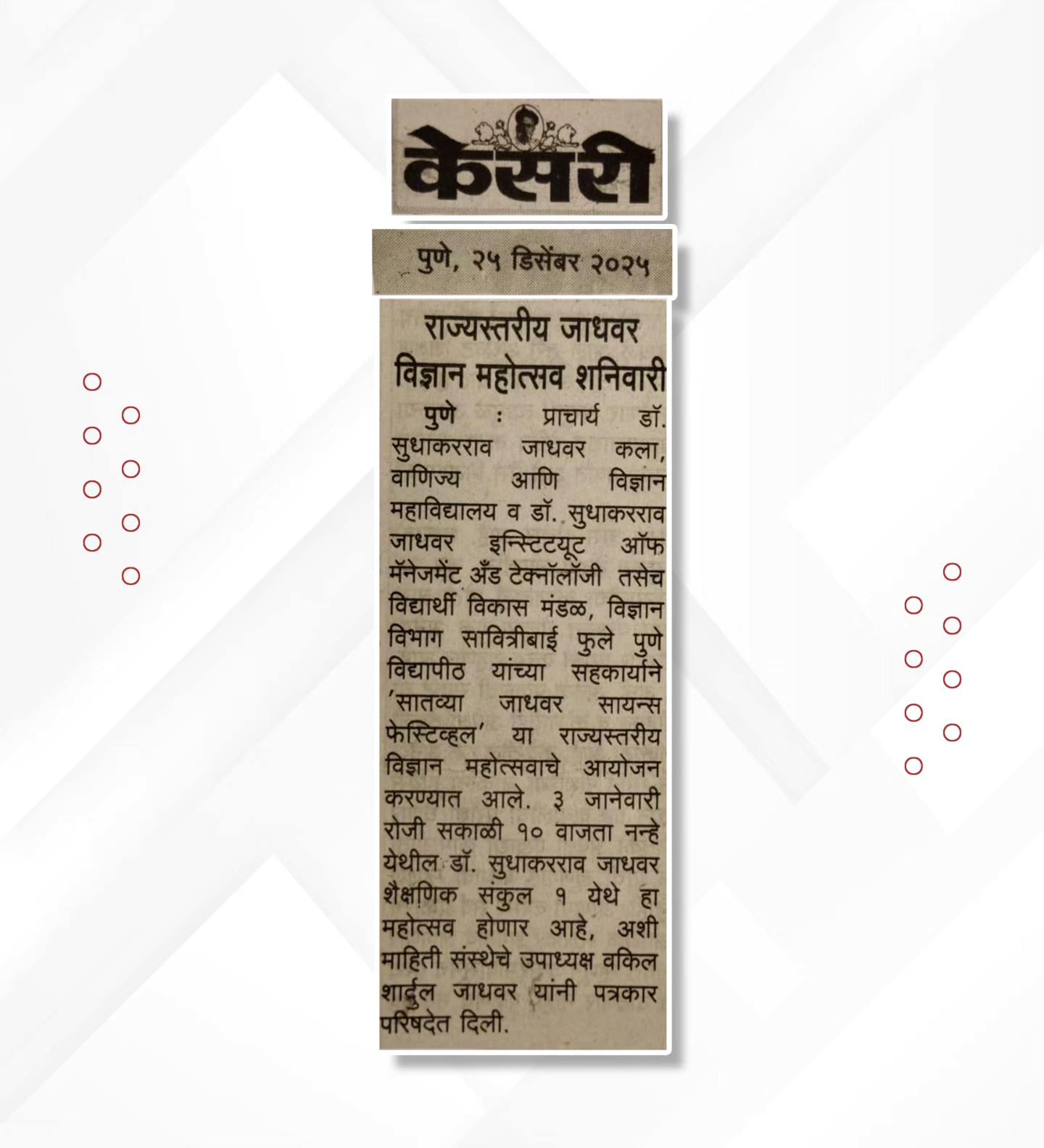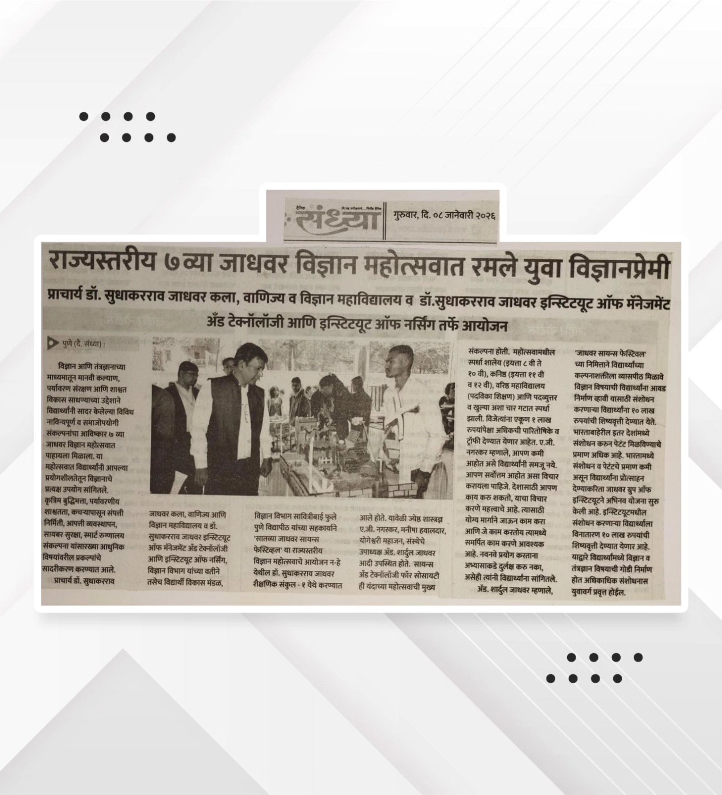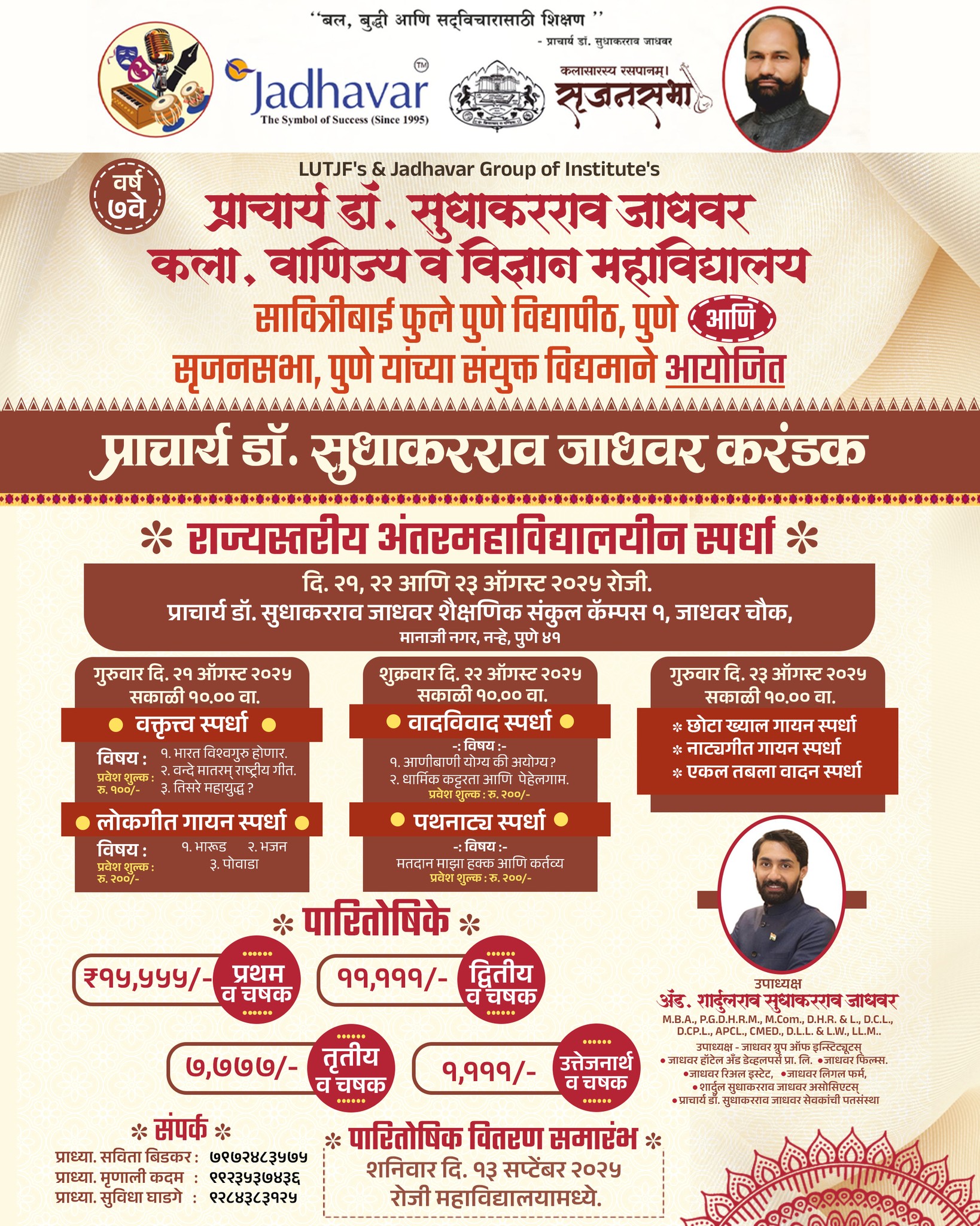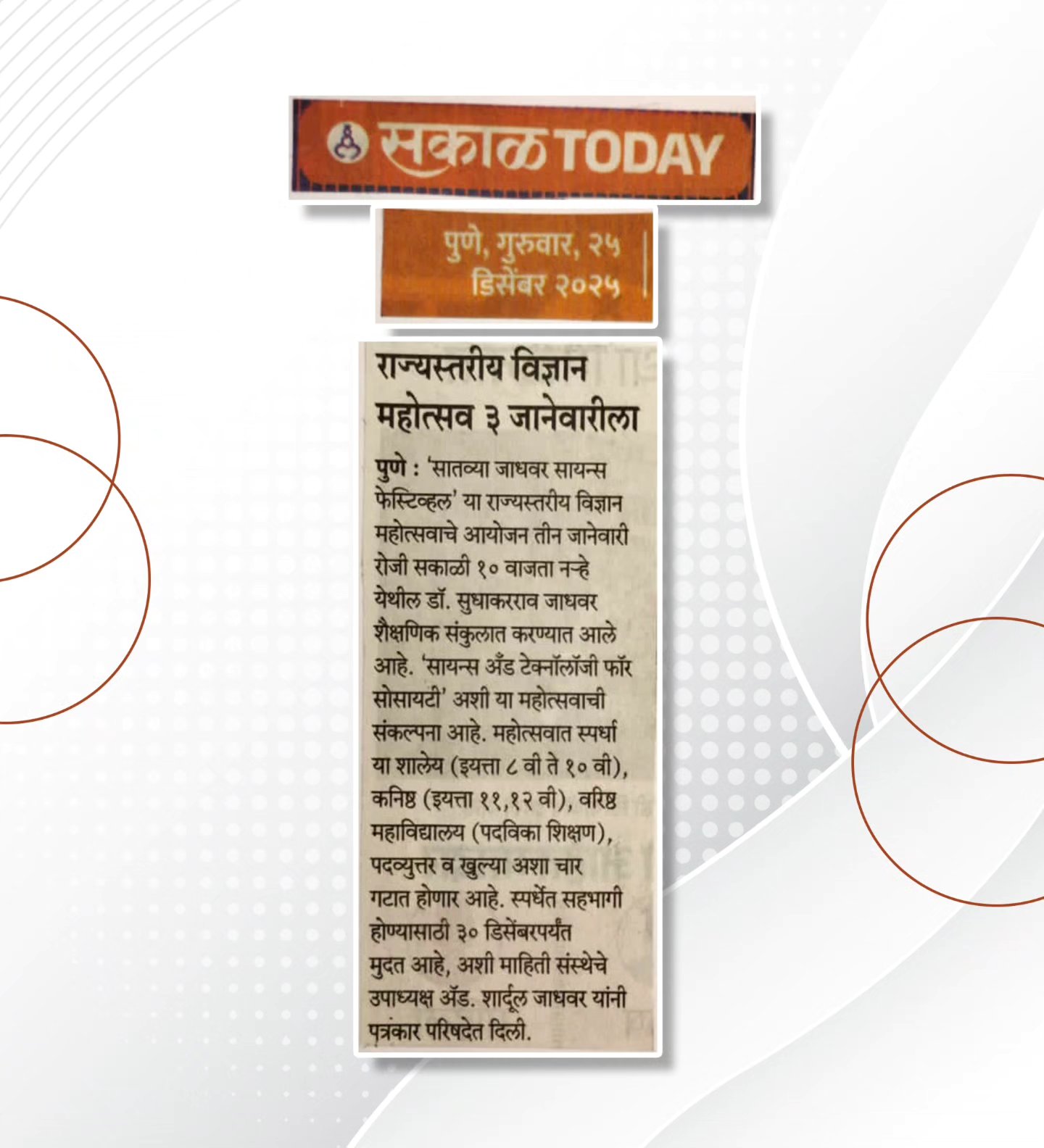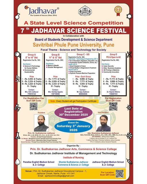 राज्यस्तरीय 7 वा जाधवर विज्ञान महोत्सवाचे आयोजन