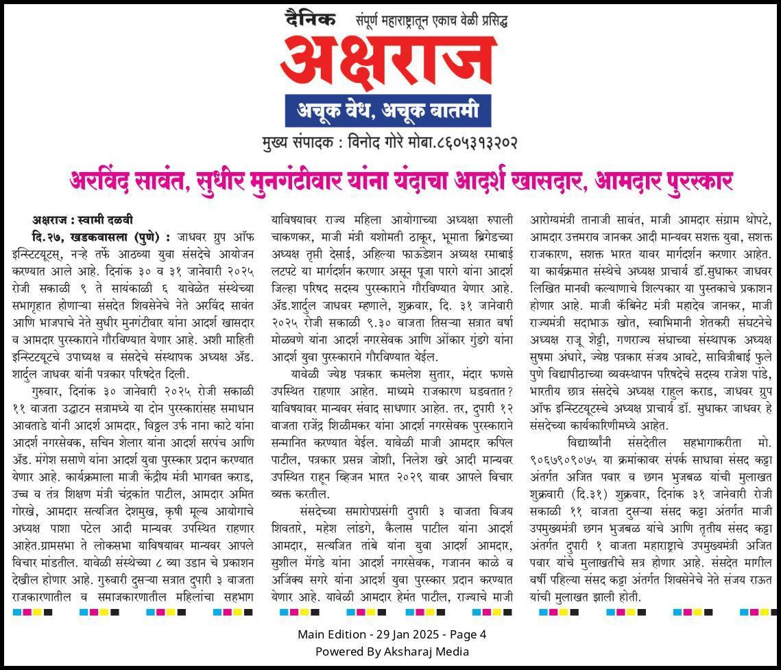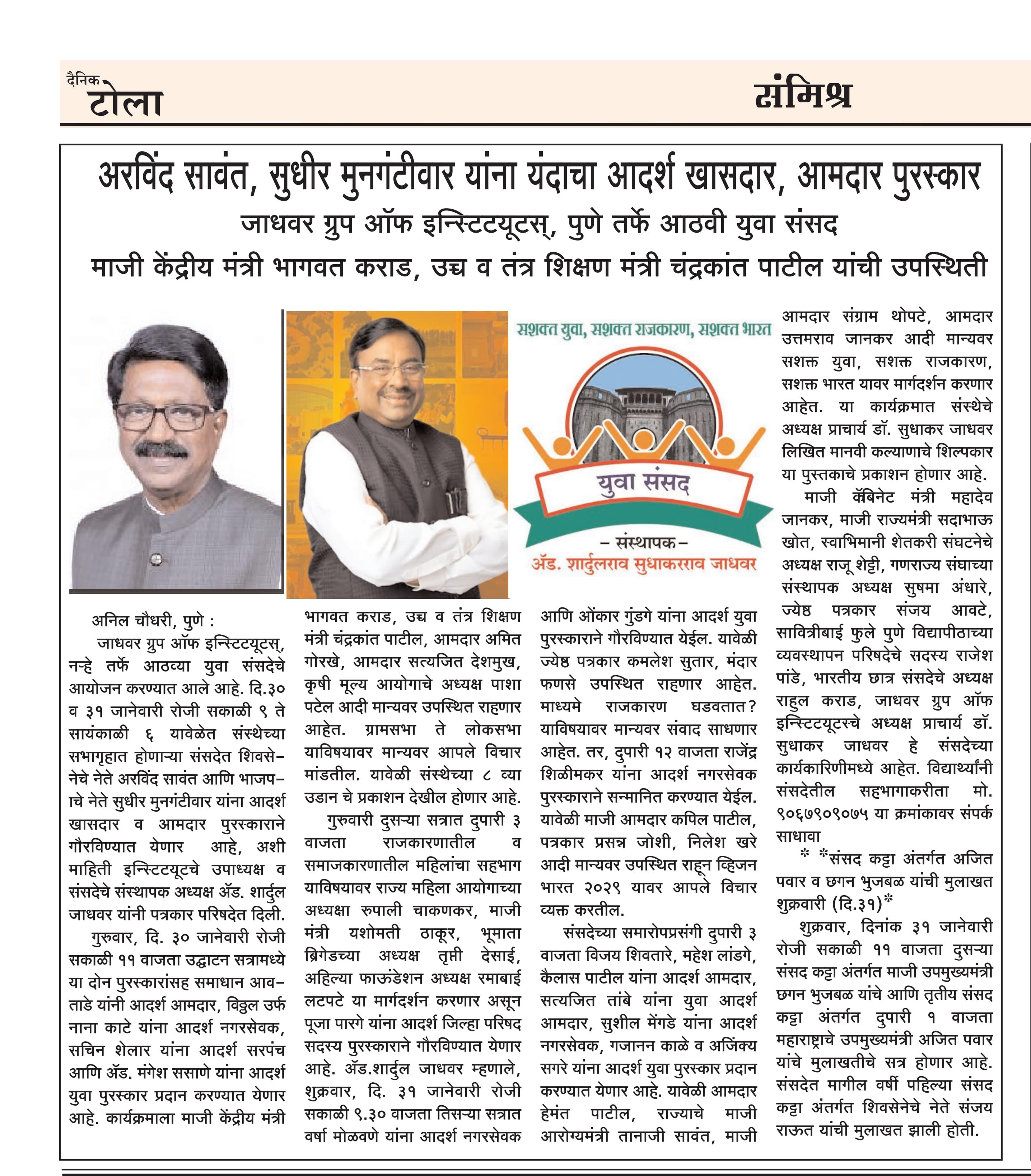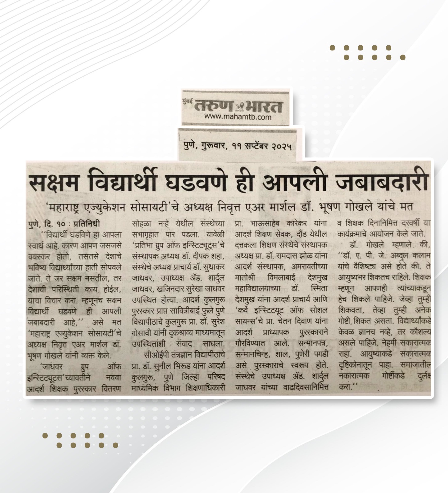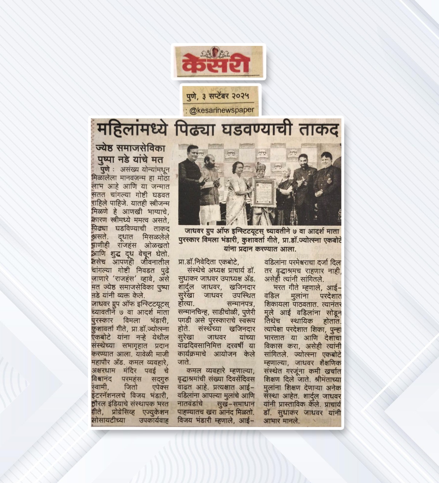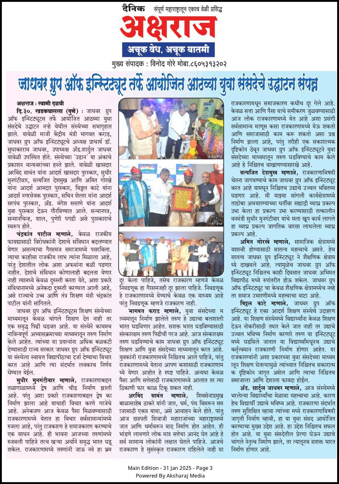 राज्यस्तरीय 7 वा जाधवर विज्ञान महोत्सवाचे आयोजन